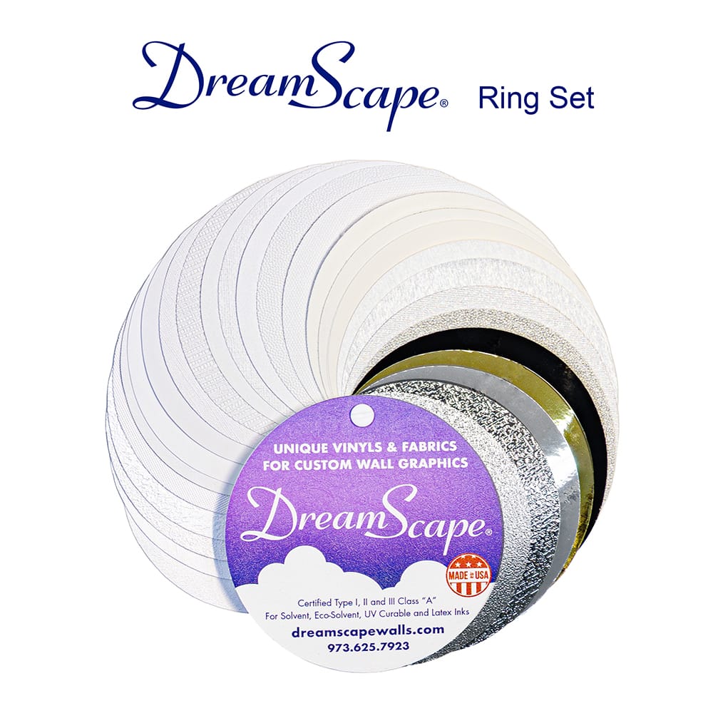 This sample ring set is the perfect tool for your print shop, sales force, and customer presentations. Each DreamScape texture is represented inside. Compact and light, the DreamScape ring is very portable.